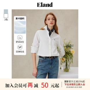 公式 上衣2025春季 衬衫 女纯色棉感显瘦长袖 新款 Eland衣恋衬衫
