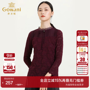 女2025春设计感洋气小衫 衬衫 上衣 长袖 花边立领流苏亮片蕾丝雪纺衫
