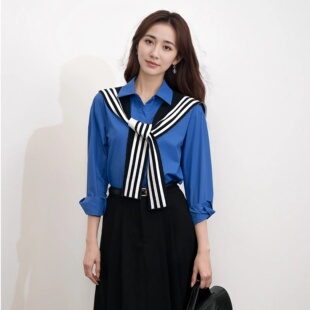设计感宽松休闲法式 女2025秋新款 衬衣气质上衣 衬衫 浅蓝色翻领长袖
