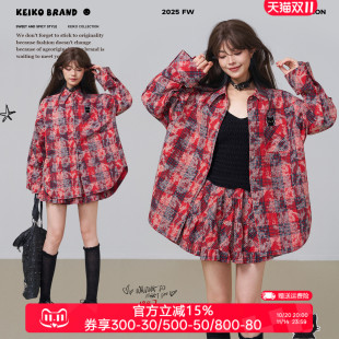 女秋季 衬衫 韩系宽松纯棉休闲上衣 复古回潮红色格子印染长袖 KEIKO