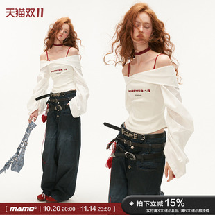 修身 女2024新款 独特小众设计感一字肩上衣 暗纹白色衬衫 MAMC灯笼袖