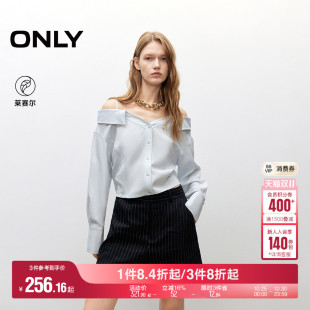 衬衫 ONLY2025秋季 长袖 莱赛尔透气淡人一字露肩束腰绑带短款 女 新款