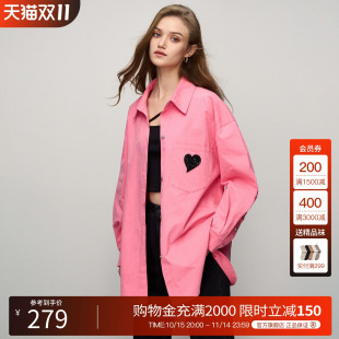 House 新款 百家好长袖 女宽松秋季 别致设计上衣外套 粉色衬衫 Basic