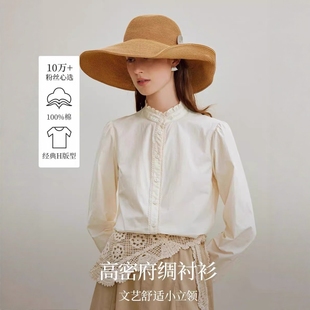 通勤百搭气质新款 法式 2025年秋季 衬衫 纯棉正肩衬衣 立领花边长袖