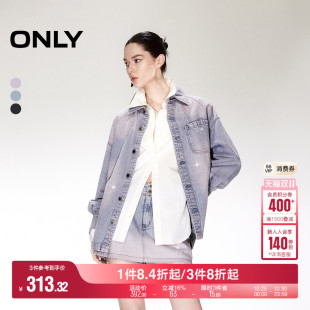 女 重工烫钻实用贴布口袋宽松显瘦落肩牛仔衬衫 ONLY2025秋季 新款