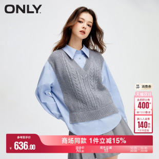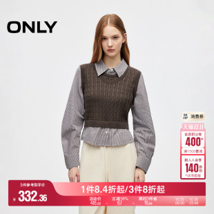 衬衫 ONLY2025秋季 长袖 学院风针织马甲假两件设计翻领修身 女 新款