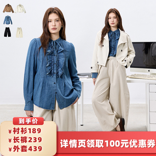 新款 上衣2025秋季 女老钱风正肩小翻领牛仔衫 Eland衣恋衬衫