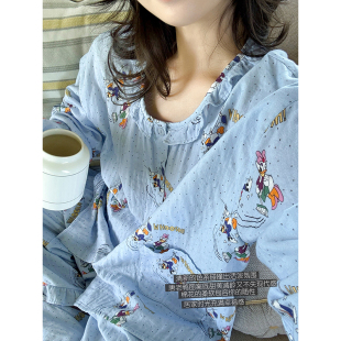 • 100棉软糯亲肤感趣味唐老鸭拼接花边设计休闲睡衣睡裤 安妮森林 秋