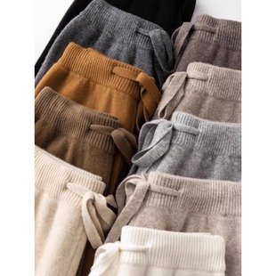 秋冬高腰针织100%软糯羊毛阔腿裤 子 女垂感小个子百搭直筒羊绒长裤