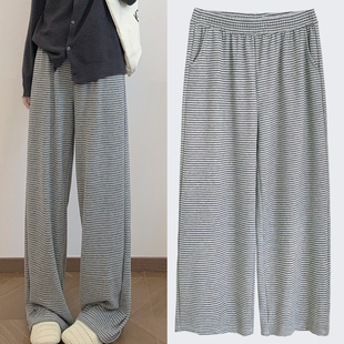 长裤 条纹针织阔腿裤 宽松休闲裤 垂感bf慵懒风遛弯裤 女春秋2025新款