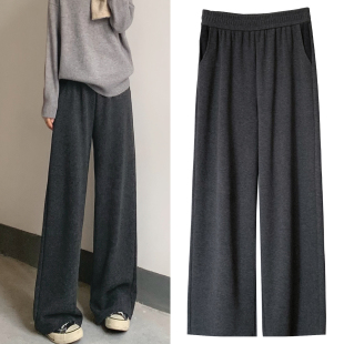 宽松直筒拖地裤 垂感松紧腰羊绒针织长裤 女2025新款 秋冬高腰阔腿裤