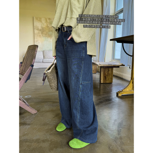 棉感复古深蓝老钱风休闲显瘦百搭牛仔裤 女秋安妮森林 时髦垂坠长裤