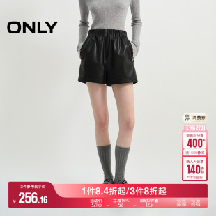 休闲裤 实用隐形插袋抽绳显瘦舒适A型PU短裤 女 新款 ONLY2025冬季