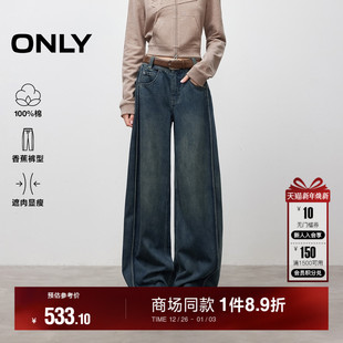 新款 牛仔裤 吸睛香蕉裤 长裤 女 解构裁剪宽松遮肉阔腿裤 ONLY2025冬季