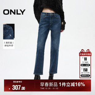 牛仔裤 ONLY2026春季 九分裤 小个子高腰显瘦烫钻直筒裤 女 新款