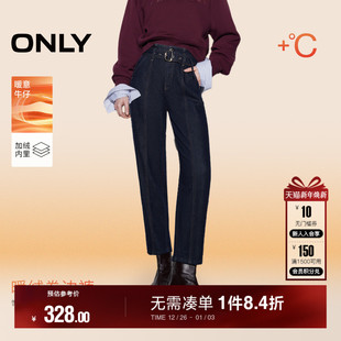 牛仔裤 ONLY2025冬季 锥形裤 高腰加绒舒适撞色明线九分裤 女 新款