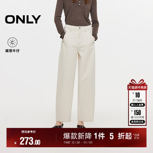 新款 牛仔裤 复古做旧裤 直筒裤 女 线前移高腰显瘦长裤 ONLY2026春季