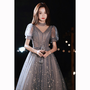 韩版 夏季 灰色伴娘团礼服姐妹裙显瘦连衣裙女 2024新款 伴娘服中长款