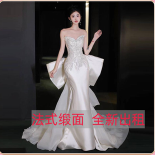 出租赁法式 高级感迎宾主纱 抹胸鱼尾小个子缎面轻婚纱礼服2025新款