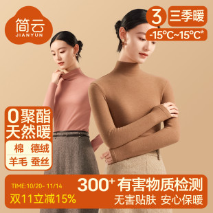 简云羊毛蚕丝德绒半高领打底衫 秋衣女发热内衣中领保暖上衣冬季