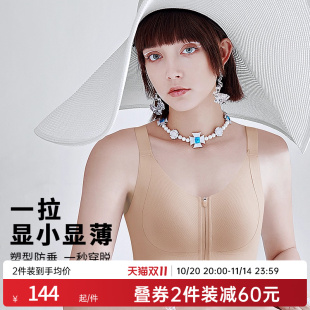 • 润微一拉薄大胸显小内衣女薄款 无痕前扣拉链提拉防下垂收副乳文胸