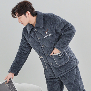 睡衣冬款 男士 加厚加绒珊瑚绒三层夹棉袄秋冬天家居服 冬季 2025新款