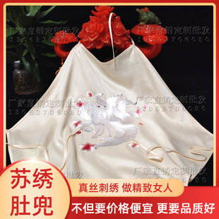 苏绣手工真丝刺绣荷花树枝牡丹肚兜女士睡衣内衣吊带米白色九尾狐