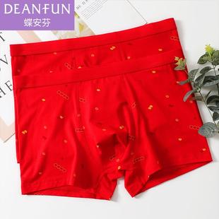 头 大红色本命年结婚庆新年莫代尔棉四角平角柔软裤 蝶安芬男士 内裤