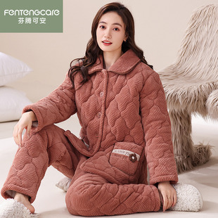 三层加厚 家居服冬天冬款 芬腾可安冬季 加绒珊瑚绒夹棉睡衣女士大码