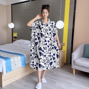 加长大码 连衣裙睡衣人造棉宽松孕妇胖MM200斤家居服 绵绸睡裙夏季