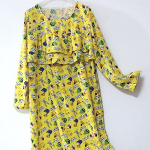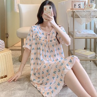 绵绸长款 卡通棉绸加大码 短袖 夏季 孕妇睡衣连衣裙家居服 睡裙女薄款