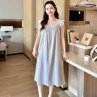可外穿大码 中老年妈妈睡衣纯棉绵绸薄款 家居连衣裙 睡裙女夏季 无袖