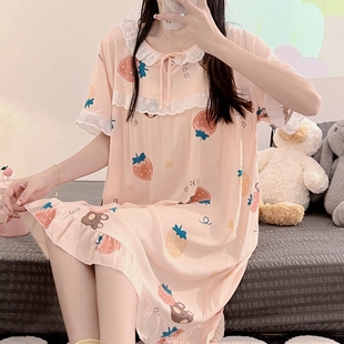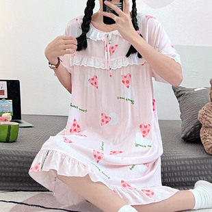 可爱大码 棉绸睡裙女夏款 棉绸睡衣绵绸连衣裙人造棉裙子睡衣裙薄款