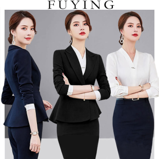 裙前台接待美容院师气质女神范珠宝店工作服秋冬西装 职业装 女套装