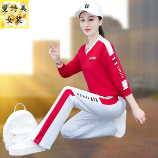 时尚 春秋季 女2025年新款 运动服套装 洋气跳舞团购两件套 V领喇叭裤