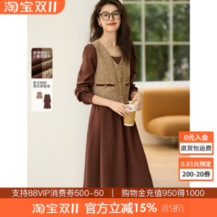 套装 时尚 新款 沫晗依美美拉德复古小香风马甲连衣裙两件套2025春季