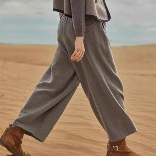 阔腿裤 Dan 时髦精自留款 女 深灰色毛呢加绒加厚秋冬弯刀裤