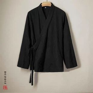 • 300斤新中式 德绒上衣改良汉服茶服禅意服系带文艺中国风长袖 大码