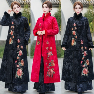 刺绣花长款 中式 女式 加棉长袖 气质棉袄 棉衣民族风妈妈装 2025秋冬款