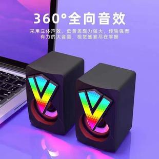 • 新款 机笔记本桌面迷你家用低音炮音响 跨境2039USB音箱RGB发光台式
