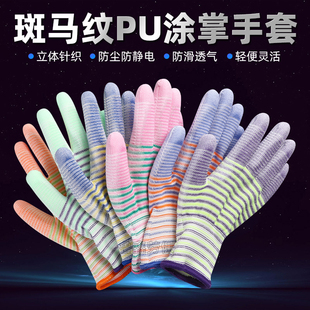 PU涂掌斑马纹涂胶薄款 耐磨防滑舒适透气男女打包尼龙干活劳保手套