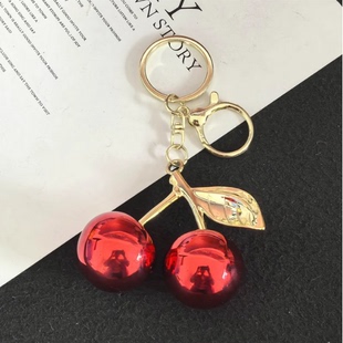 创意高档精致水果车厘子樱桃钥匙链包包挂饰情侣钥匙扣书包小挂件