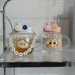 水杯女生玻璃少女高颜值大肚容量夏季 吸管办公室可爱杯子 2024新款