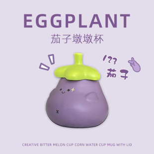 茄子杯墩墩杯紫色水杯子情侣搞怪可爱马克杯陶瓷带盖茶杯礼物女生