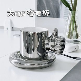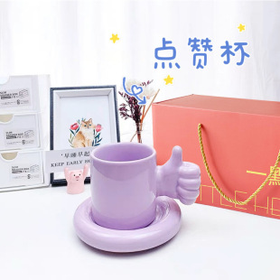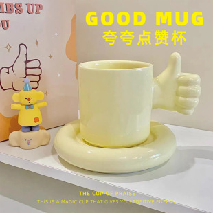ins创意设计大拇指点赞马克杯子咖啡杯碟陶瓷夸夸水杯加油鼓励杯
