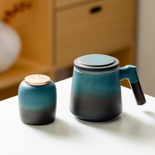华凉远山茶杯茶水分离杯陶瓷大容量带盖过滤杯子办公室泡茶马克杯