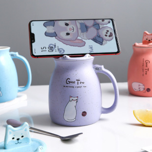 杯子女陶瓷马克杯带盖勺猫咪可加热早餐杯咖啡高颜值情侣喝水杯男