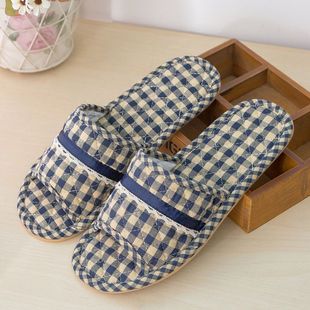 牛筋材质拖鞋 男女室内防滑牛筋底耐磨情侣 格子家居家用布艺棉拖鞋