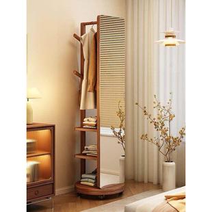 实木可移动旋转穿衣镜一体衣帽架家用落地全身镜挂衣架落地置物架