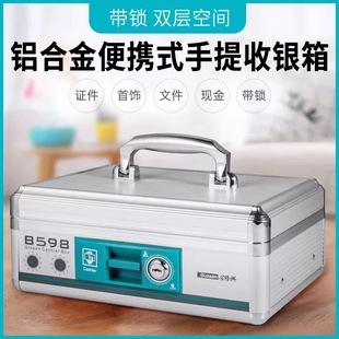 加厚铝合金带锁收银箱便携式 箱金属钱箱盒 多功能现金收银盒提款